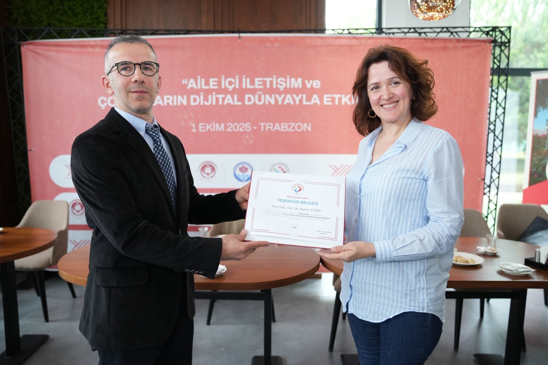 Üniversitemiz Bilim İletişimi Ofisi tarafından “Bilim Kafe” etkinliklerinin ikincisi 'Aile' temalı olarak gerçekleştirildi. Trabzon Büyükşehir Belediyesi Kadın Yaşam ve İstihdam Merkezi Kafeteryasında “Aile Yılı” teması altında düzenlenen etkinliğe farklı yaş kesimlerinden çok sayıda kadın katıldı.